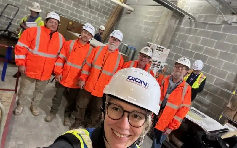 BION continues to expand their safety talks with CEO Josie Geiger going to the field first hand to share the importance of safety with each of the teams. Josie remains so impressed with the work BION, inc. does and congratulates the men on a job well done! Rain jackets for everyone!